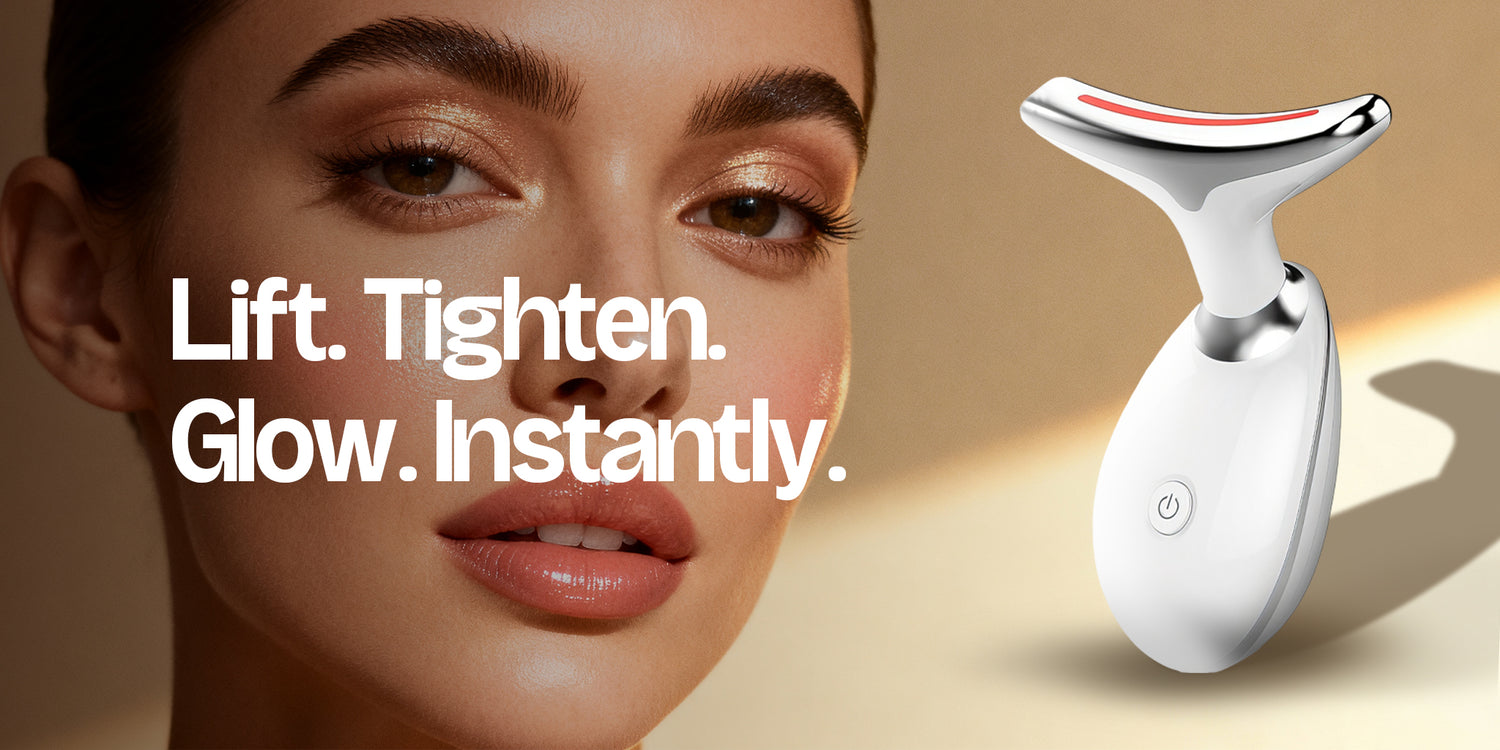 Glide device in upward & outward motions for ~5–10 minutes, covering face + neck. Focus on trouble areas.